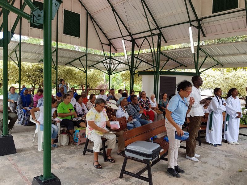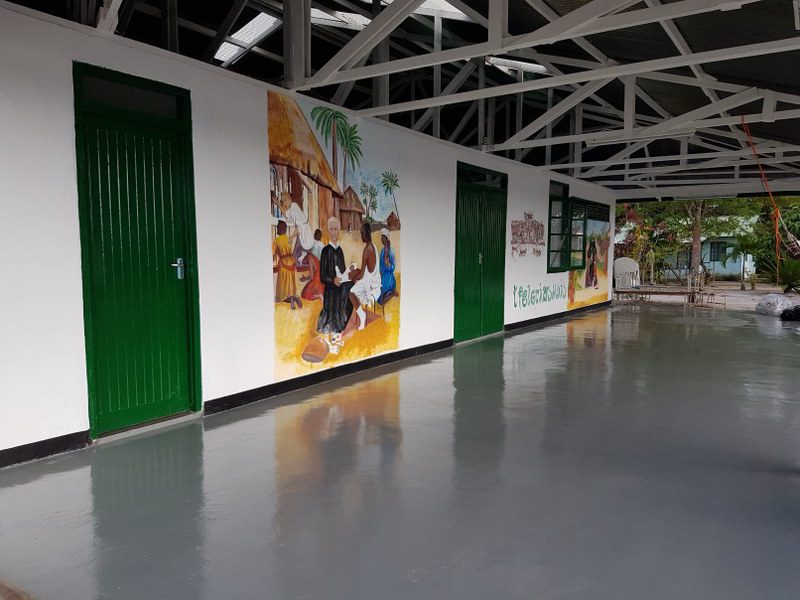 On occasion of the 130th anniversary of Petrus Donders, Batavia was provided with a thorough remake. Not only were buildings, monuments and sites rehabilitated, but a permanent exhibition was also put in the Pilgrim house. Now Batavia has become not only a very nice pilgrimage place, but also a very interesting place to visit for tourists or non-pilgrims. Batavia can only be reached by boat from the village of Boskamp in Saramacca, Suriname. In replacement of the former boat Peerke I, a new boat was purchased, called ‘Gabriel’. Below you will find an impression of Batavia today.